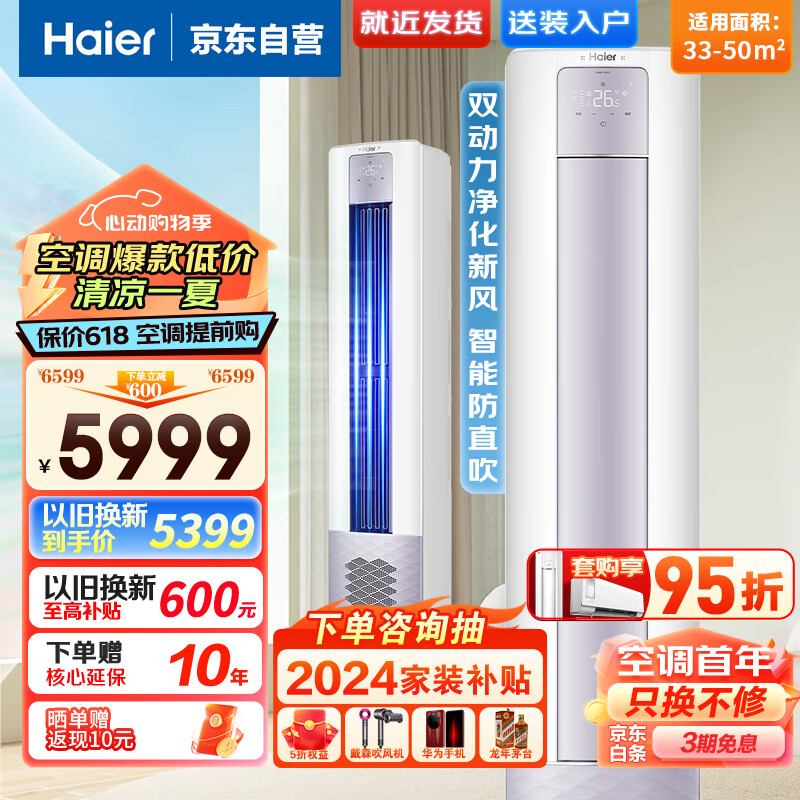 海尔(Haier)空调柜机3匹新一级能效雷神者II变频冷暖健康自清洁客厅空调立式柜机新风空调以旧换新72LBC价格:5999.00元!