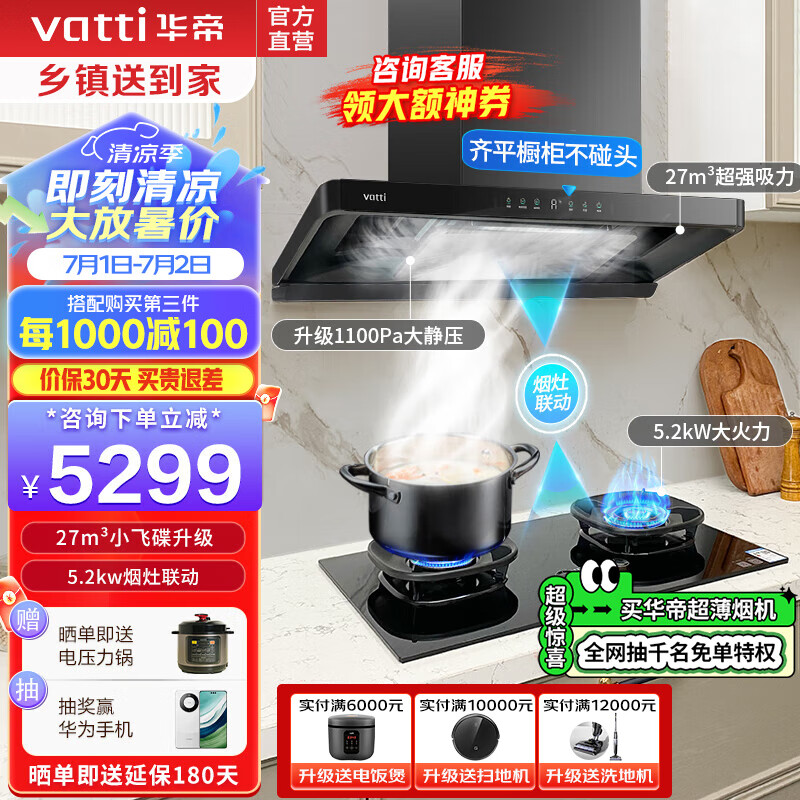 华帝(VATTI)【超级新品】小飞碟欧式超薄抽油烟机i11S35官方三腔S35顶吸顶侧一体26风量变频烟灶联动自清洗 S35P+309L27风量+5.2KW丨烟灶联动 天然气价格:5299.00元!