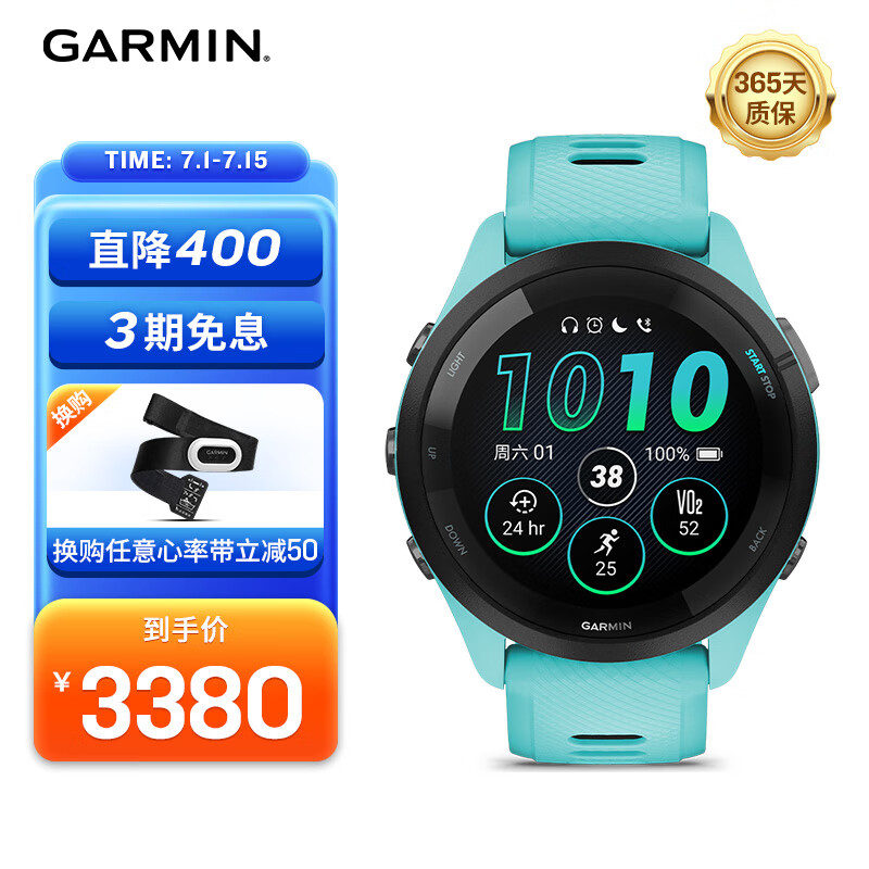 佳明(GARMIN)Forerunner265蓝色 游泳跑步智能多功能户外旗舰男女运动手表价格:3380.00元!