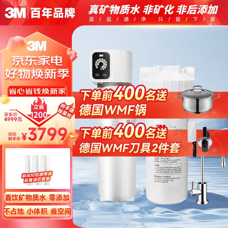 3M净水器家用净水机矿物质0废水直饮智能过滤器3L/分大流量8000升处理量过滤器SW60价格:4359.00元!