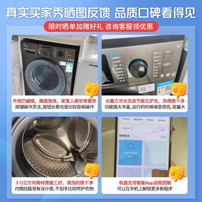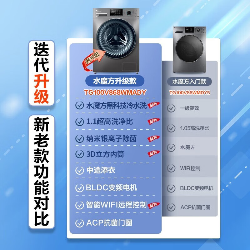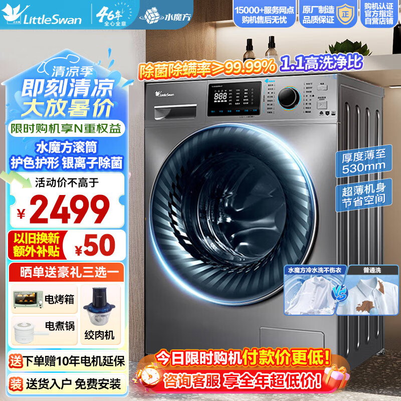 小天鹅(LittleSwan)10公斤滚筒全自动洗衣机水魔方护色护形纳米银离子除菌除螨消毒洗家用大容量一级防缠绕家电洗衣机 水魔方868非烘干:1.1洗净比+纳米除菌+智控价格:2469.00元!