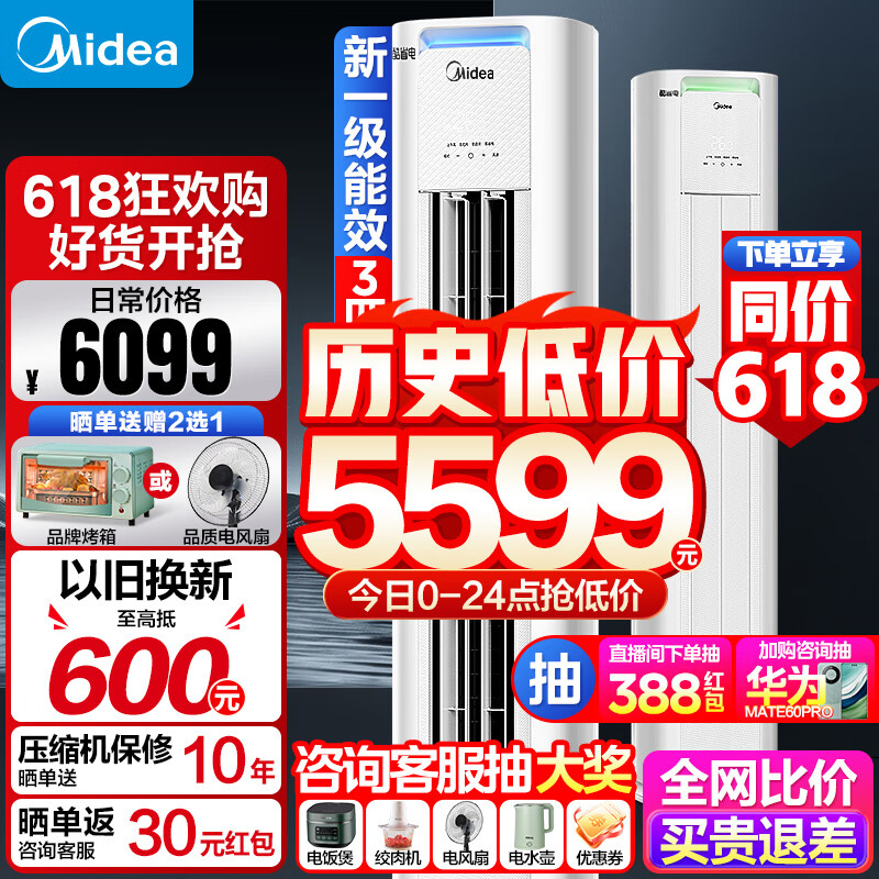 美的(Midea)3匹 酷省电PRO新一级能效 变频冷暖空调立式柜机自清洁家用客厅立式升级款云朵系列以旧换新价格:5599.00元!