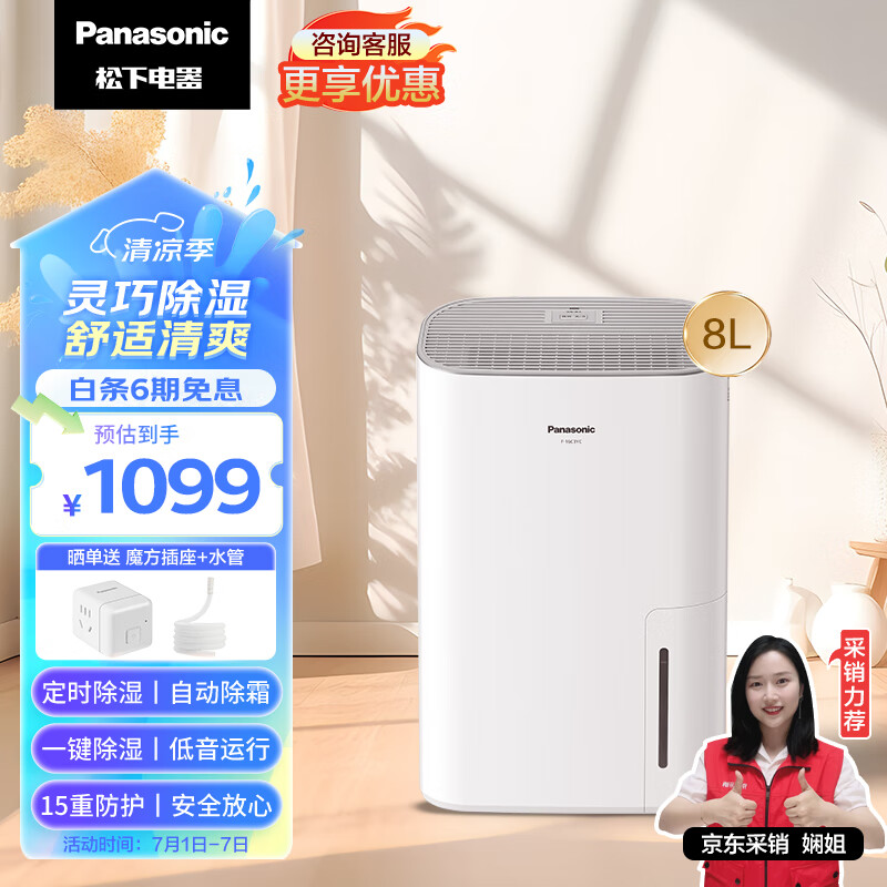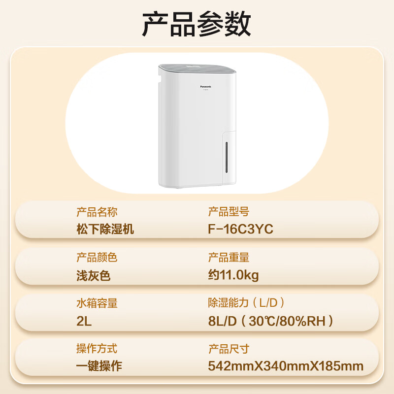 松下(Panasonic)除湿机家用抽湿机 灵巧除湿机 8升除湿量/天 一键除湿防潮 自动除霜 轻音干衣 卧室吸湿器F-16C3YC价格:1099.00元!