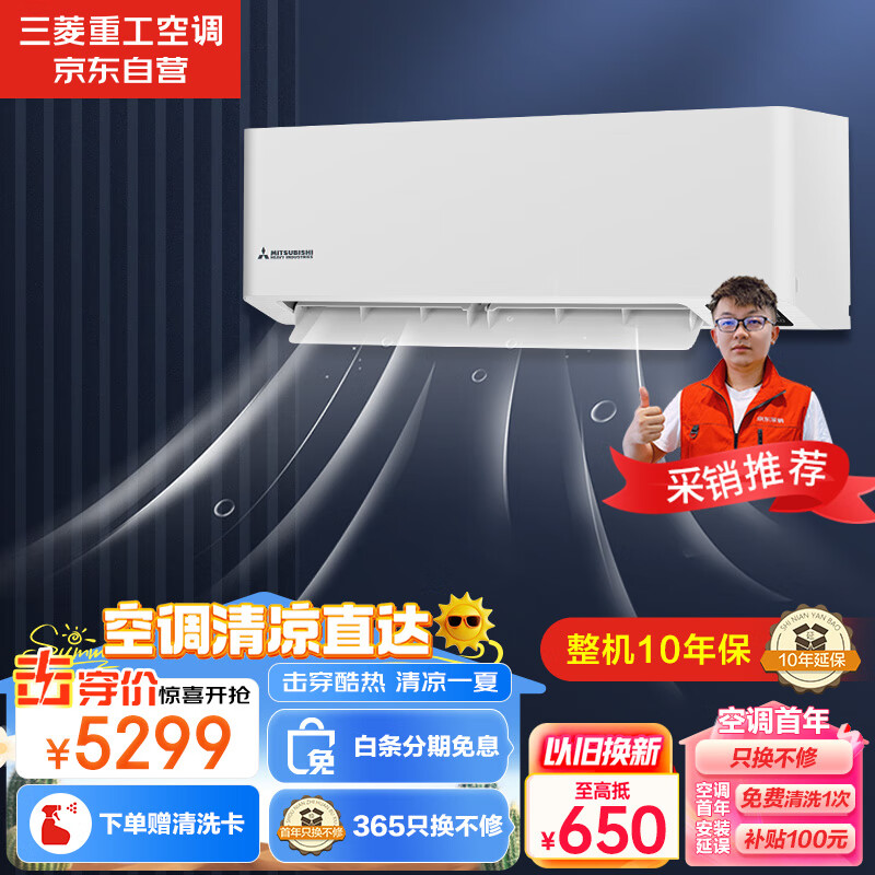 三菱重工适用14-22㎡ 新一级能效1.5匹 变频冷暖 空调挂机 节能省电 远程智控三菱空调SRK35AHV1H价格:5299.00元!