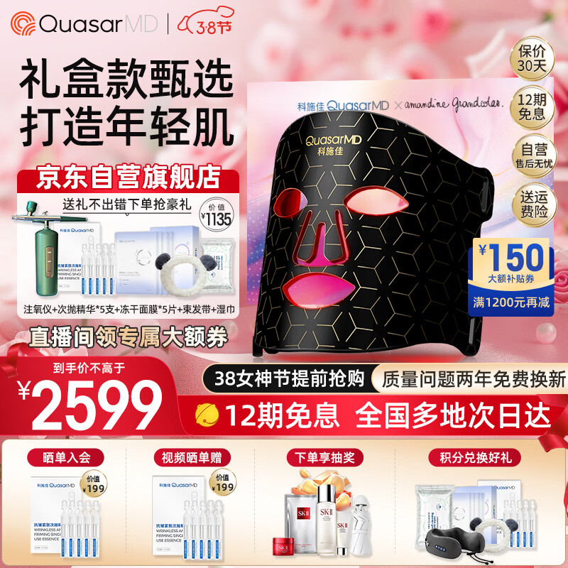 科施佳QuasarMD面罩美容仪黑金面膜式仪 家用光子嫩肤仪脸部大排灯抗皱修护亮肤女神节礼物送女生礼盒款价格:4199.00元!
