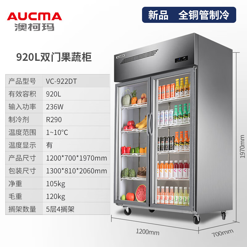 澳柯玛(AUCMA)保鲜柜展示柜冷藏双开门立式冰柜商用大容量水果蔬菜饮料超市饭店大容量冰箱陈列柜商用冰箱 VC-922DT价格:4299.00元!