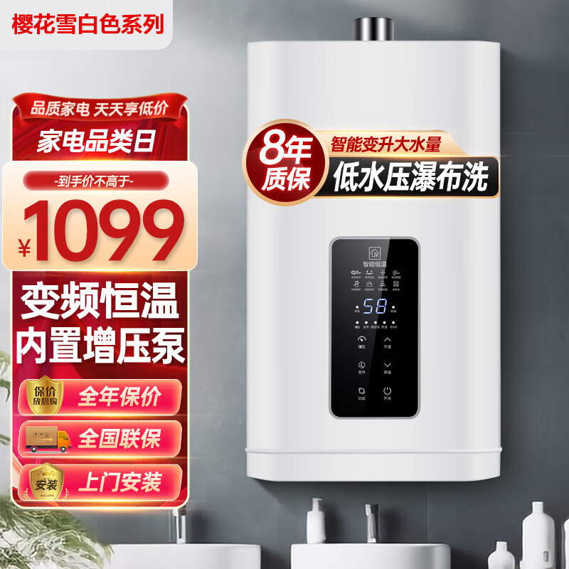 樱花雪白色16升燃气热水器即热式变频增压水伺服智能恒温ECO节能省气家用厨房洗澡强排 天然气JSQ30-16H3价格:978.00元!