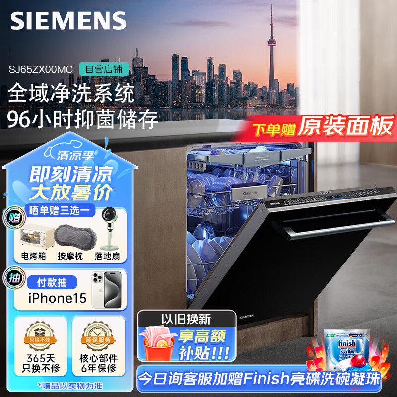 西门子洗碗机16套大容量全能舱pro晶蕾烘干存储全域净洗除菌家用全嵌入式SJ65ZX00MC带黑色面板价格:10189.00元!