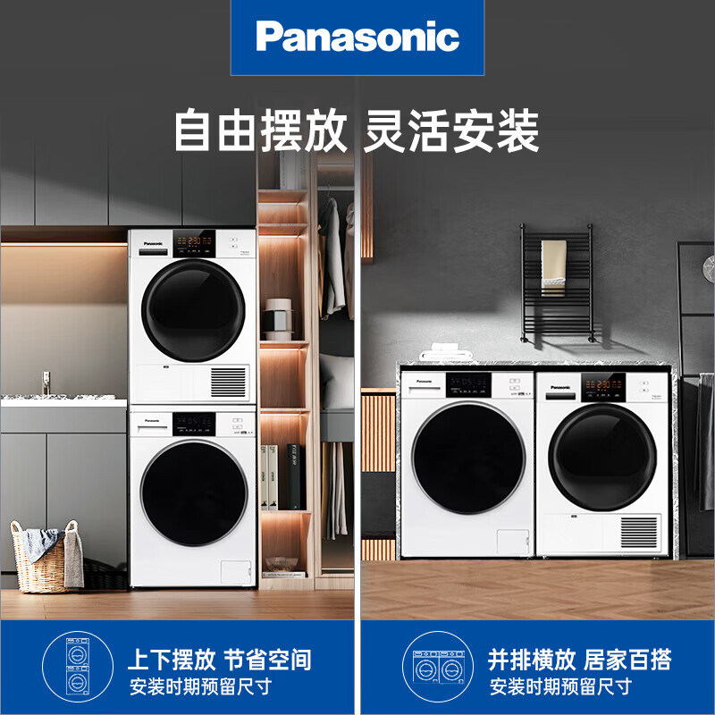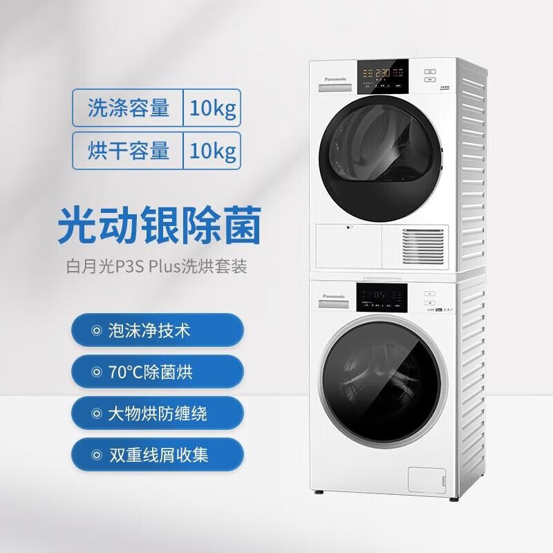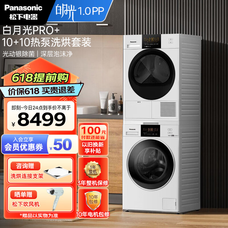 松下白月光Pro+热泵洗烘套装10公斤滚筒洗衣机全自动+10公斤烘干机干衣机 NVAE+EH10W价格:8499.00元!