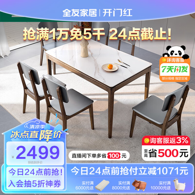 全友家居 餐桌北欧风岩板餐桌实木框架简约稳固结构餐厅长条桌吃饭桌子127902 餐桌(岩板)+127902餐椅*6价格:3570.00元!