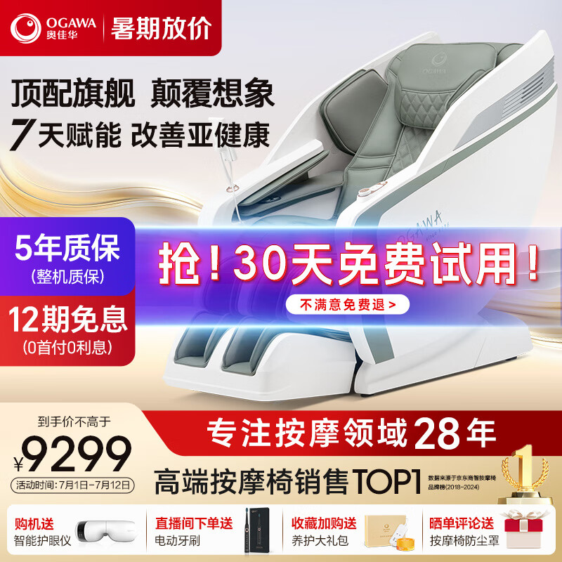 奥佳华按摩椅家用太空舱颈椎肩颈4D无极机芯全自动按摩沙发零重力全身2024按摩椅十X9未来元气 浮光绿境【经典版】价格:14999.00元!