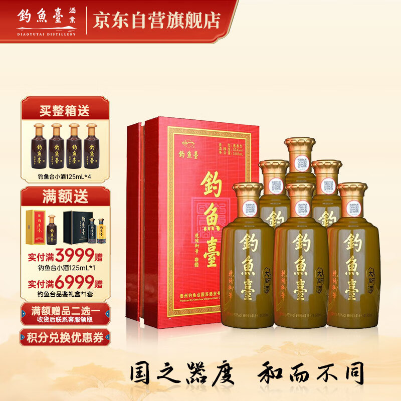 钓鱼台 大师酒 酱香型白酒 53度 500ml*6瓶 整箱装价格:3588.00元!