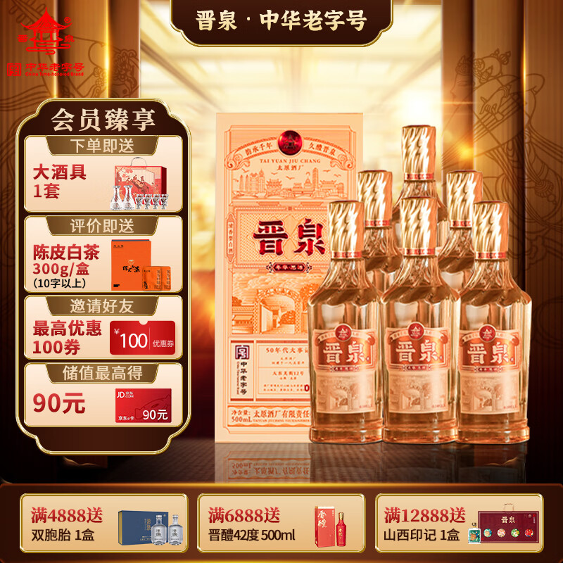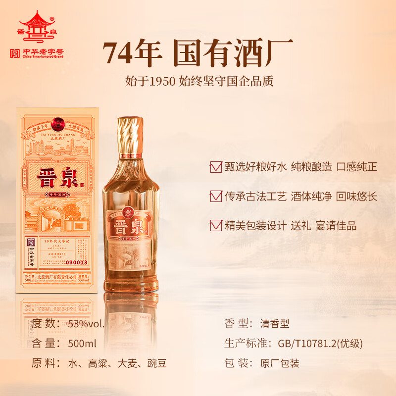 晋泉年华-思源 高粱白酒 清香型白酒 53度 500ml*6瓶 整箱装价格:1488.00元!