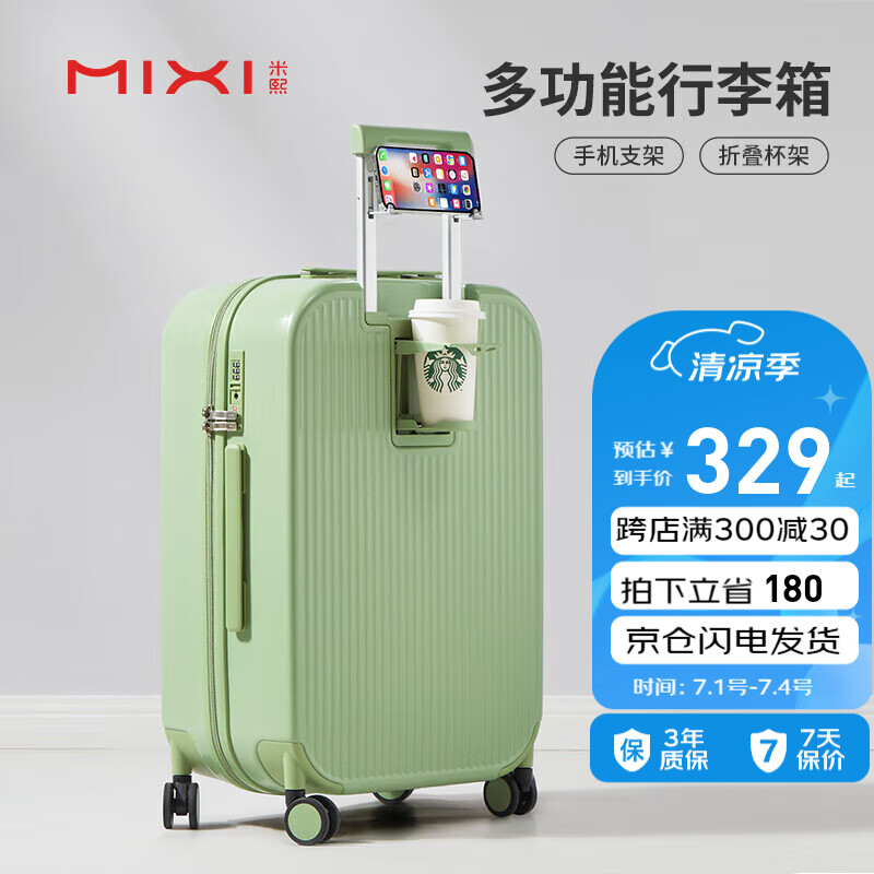 米熙多功能拉杆箱子行李箱小型20英寸登机箱男旅行箱包密码箱女果绿90价格:509.00元!