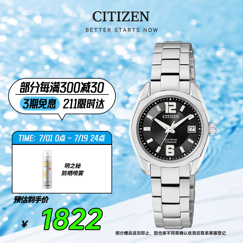西铁城(CITIZEN)手表女日韩表光动能日显表盘舒博钛时尚送送长辈礼物EW2101-59E价格:2012.00元!