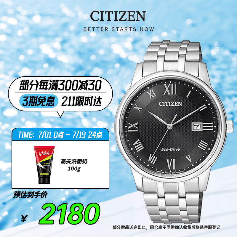西铁城(CITIZEN)手表男日韩表光动能日期显示表盘钢带商务父亲节礼物BM6970-52E价格:2430.00元!