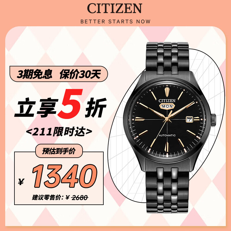 西铁城(CITIZEN)手表自动机械不锈钢表带商务时尚商务男士父亲节礼物NH8395-77EB价格:2680.00元!