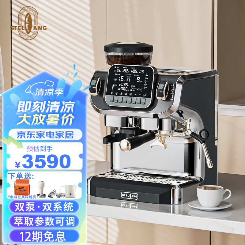 雪特朗(STELANG)咖啡机家用双系统 双锅炉 双水泵意式全半自动研磨一体机蒸汽可调家商两用咖啡机ST-520价格:3590.00元!