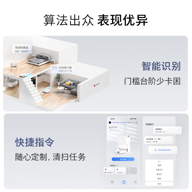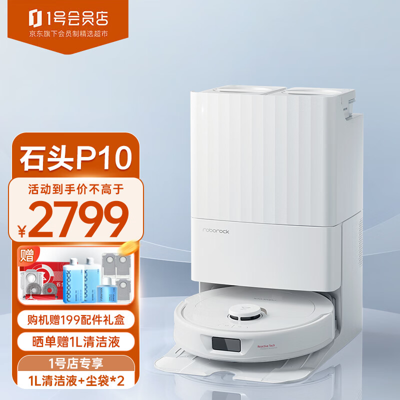 石头(roborock)扫地机器人扫拖一体 石头P10扫拖洗烘一体机 自动集尘自动清洗拖布烘干补水擦地机拖地机价格:2799.00元!