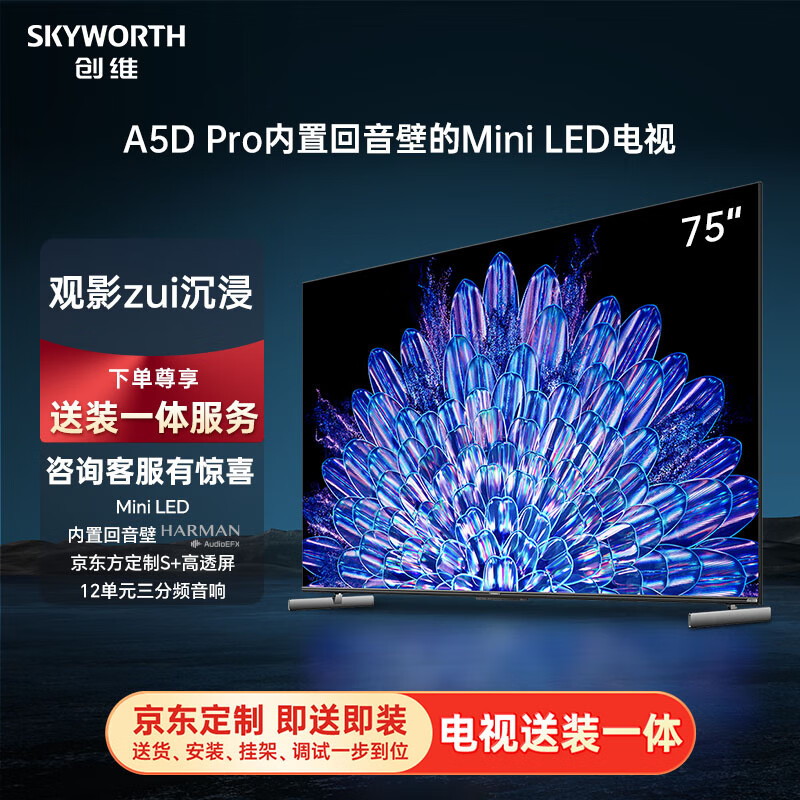 创维电视75A5D Pro 【送装一体版本】75英寸回音壁mini led电视机 智慧屏液晶4K超薄家电 平板巨幕大屏价格:6398.00元!