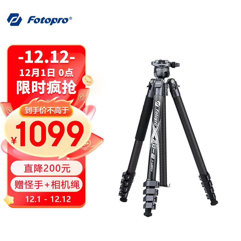 富图宝(Fotopro)飞行一号 球形云台相机微单摄影摄像无中轴扳扣碳纤维三脚架 原碳灰 含手机夹价格:1099.00元!