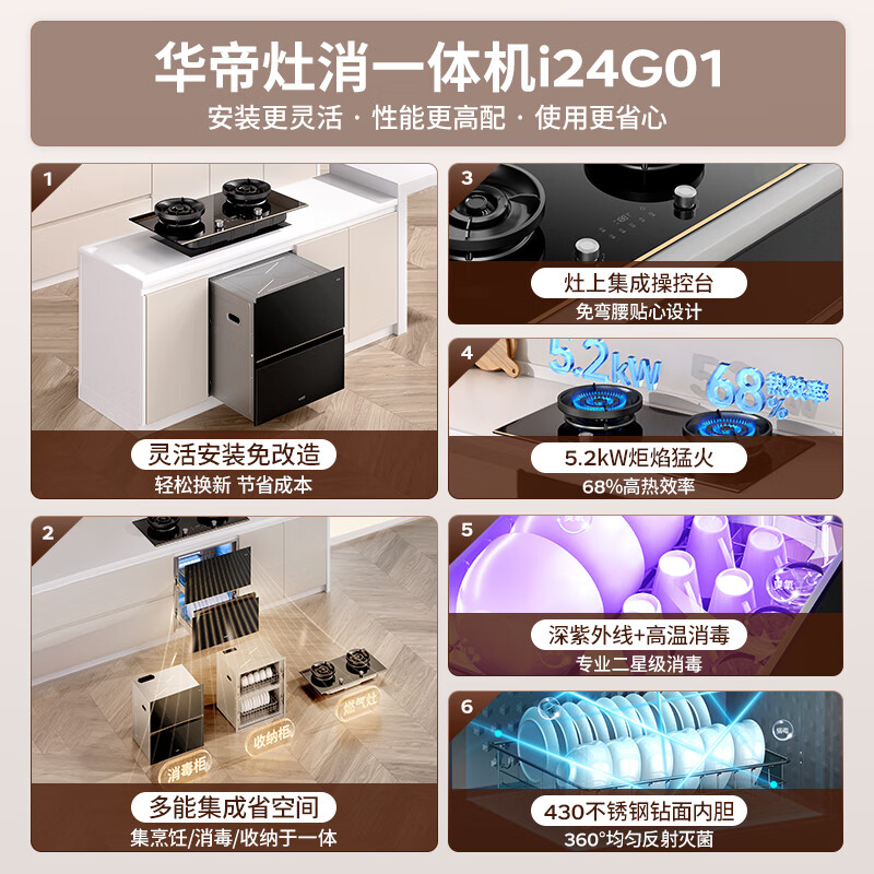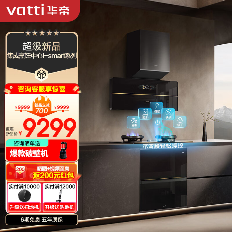 华帝(VATTI)抽油烟机集成灶烹饪中心一体式超薄近吸25大风量5.2kW节能猛火燃气灶母婴消毒柜i111X6S+i24G01价格:9099.00元!