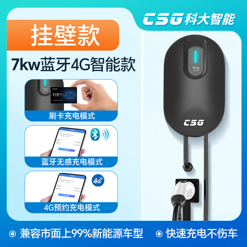 CSG科大智能充电桩新能源7KW家用交流充电桩充电枪适用特斯拉比亚迪小米汽车SU7极氪理想30米送装一体价格:2742.60元!