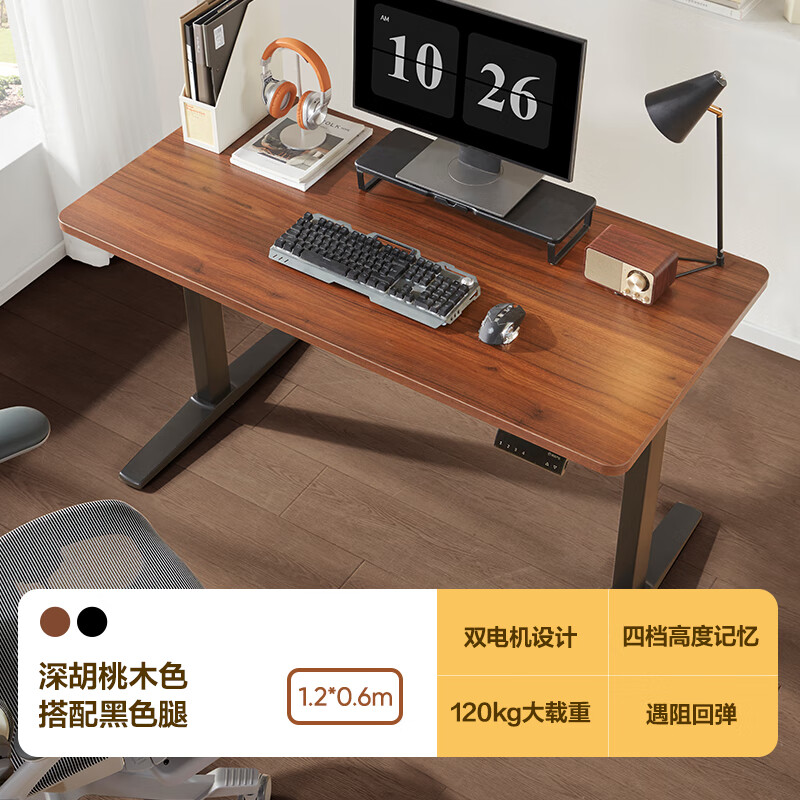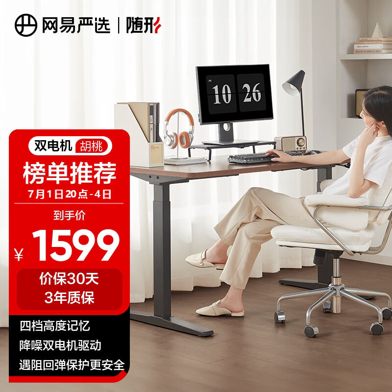 网易严选 电动升降电脑桌 站立办公升降台办公室书桌 胡桃色*1200mm*600mm价格:1999.00元!