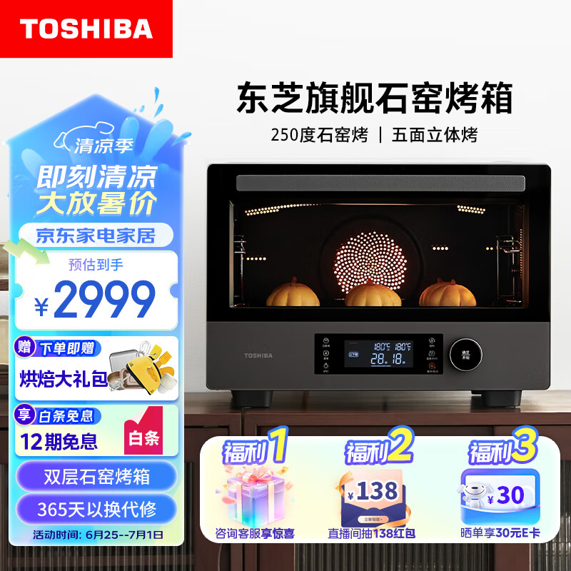 东芝(TOSHIBA)ET-XD7380电烤箱空气炸锅一体机窑炉烤箱家用台式大容量风炉平炉合一石墨烯发酵箱石窑烤烘焙38L价格:2999.00元!