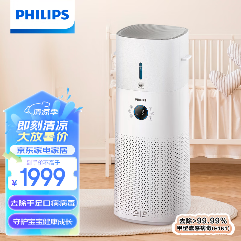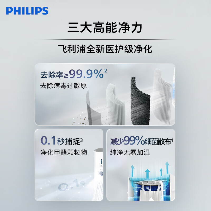 飞利浦(PHILIPS)医护级空气净化器 除过敏原除甲醛除菌除异味 净化加湿二合一无雾加湿智能互联AC3737/00价格:1999.00元!