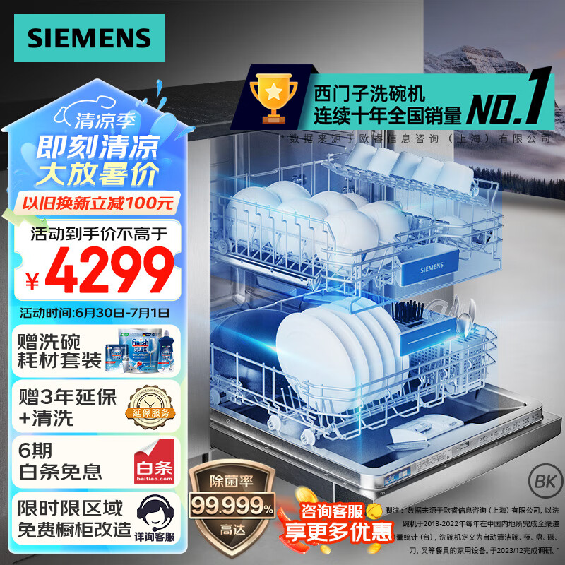 西门子12套大容量除菌家用洗碗机嵌入式 独立式 下层强洗 双重烘干 洗烘一体 多人口家庭适用 SJ236I01JC价格:4299.00元!