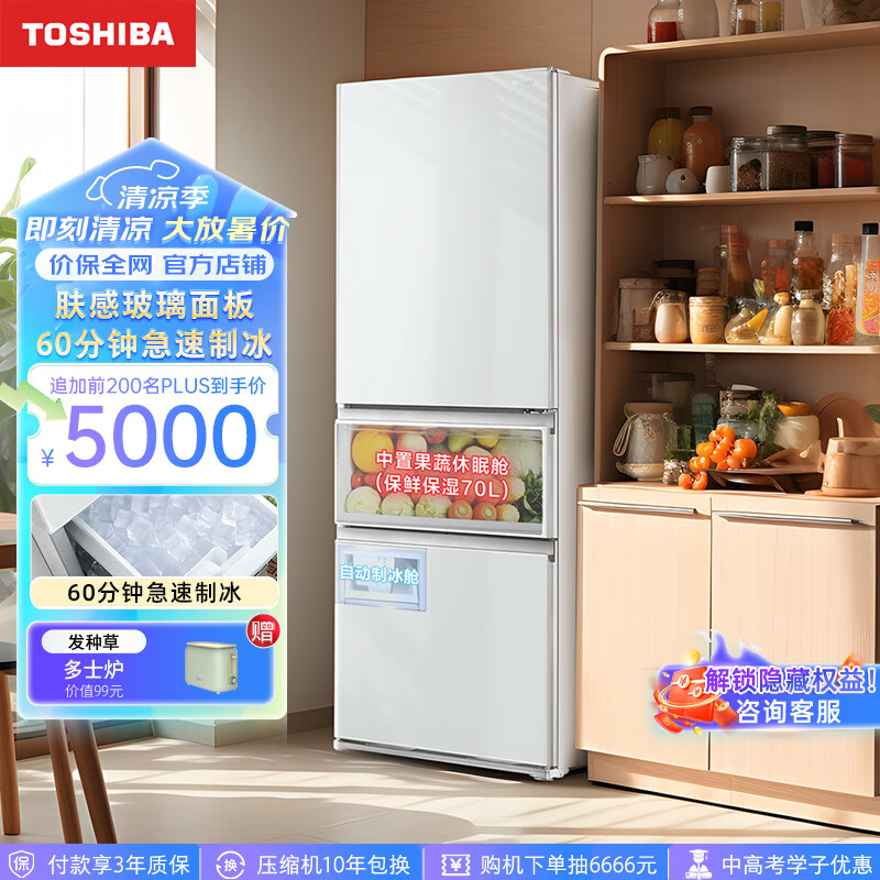 东芝(TOSHIBA)芝味系列 白桃小小桃三门日式小户型家用超薄嵌入式电冰箱自动制冰GR-RM382WE-PG2B3富士白价格:9499.00元!