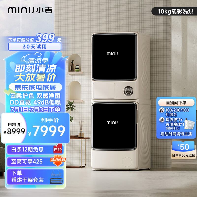 小吉(MINIJ)10+10KG智能滚筒洗烘套装 热泵式烘干机+智能变频全自动洗衣机组合 上烘下洗29+25种烘干组合价格:7999.00元!