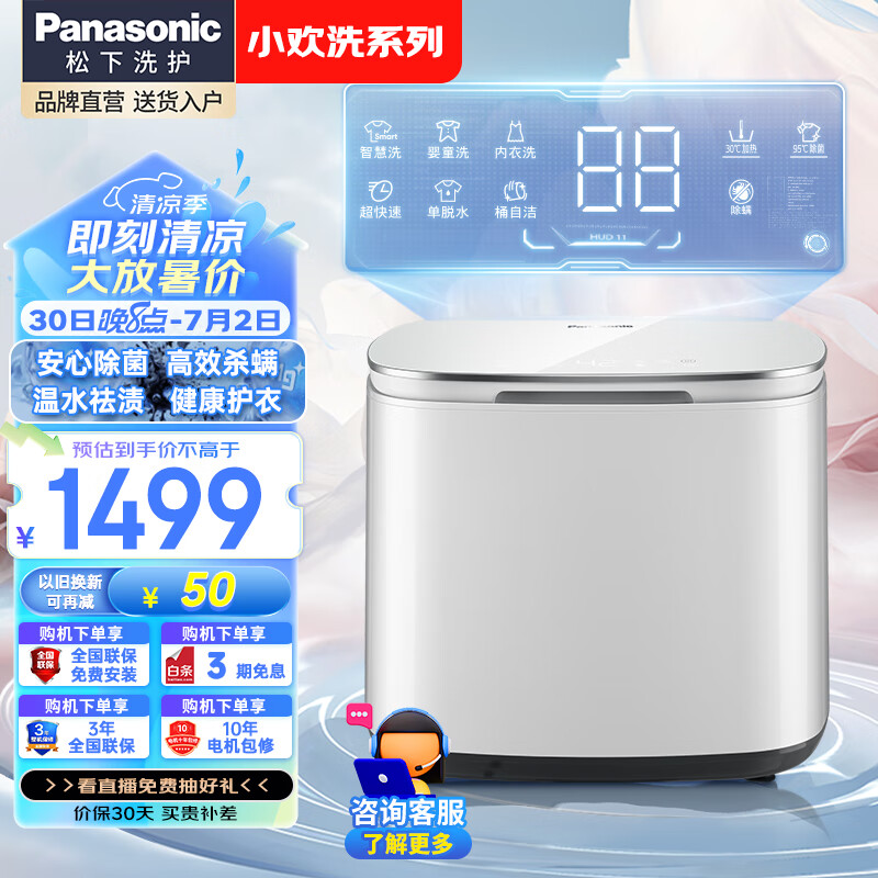 松下(Panasonic)1公斤小洗衣机小型波轮洗衣机内衣洗衣机迷你洗衣机全自动洗衣机内裤洗衣机母婴洗衣机小欢洗SE 净心白XQB10-A100价格:1499.00元!