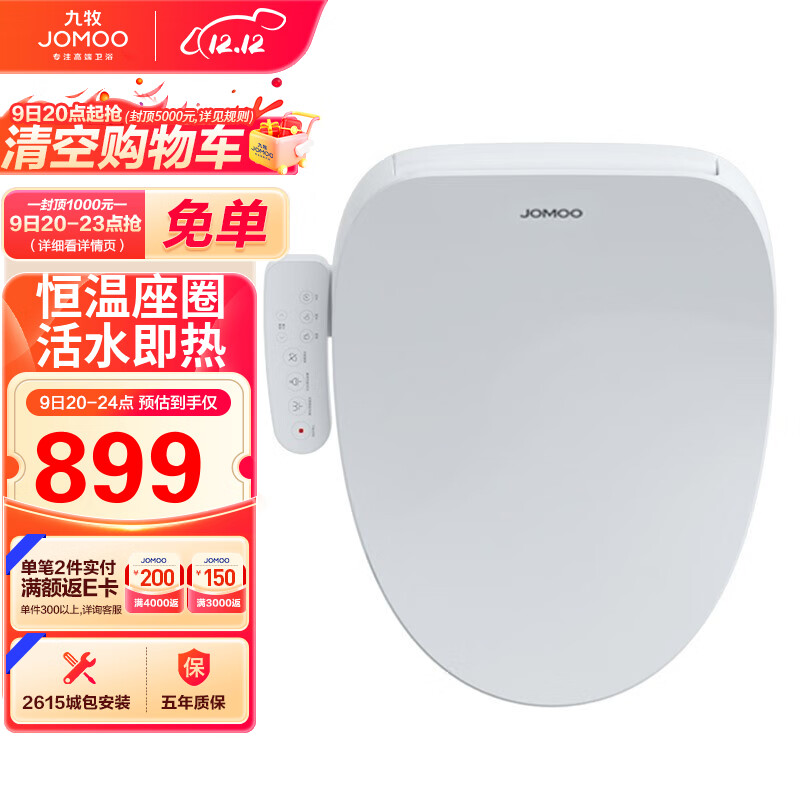 九牧 JOMOO 智能马桶盖即热式多功能臀洗冲洗器 智能马桶盖板洁身器 ZS020价格:1399.00元!