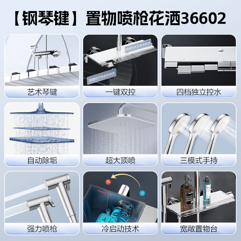 九牧JOMOO方形置物喷枪自动除垢增压钢琴按键36602-536/1B-1价格:1649.00元!