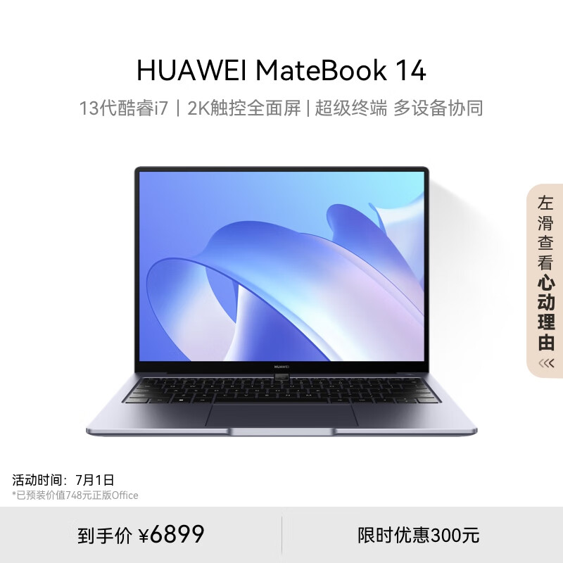 华为MateBook 14笔记本电脑 13代酷睿/2K触控屏/14英寸轻薄办公本/超级终端 i7 32G 1T 深空灰价格:6899.00元!