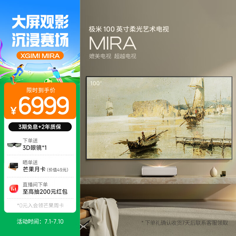 极米100英寸柔光艺术电视MIRA 混合激光超短焦投影( 哈曼卡顿音响 含100吋菲涅尔抗光幕布)包安装价格:6999.00元!