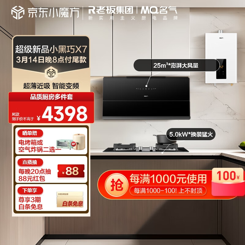 名气老板抽油烟机超薄近吸25吸力燃气灶燃气热水器烟灶热三件套X7+A6510BT+R5A06-14天然气价格:4198.00元!