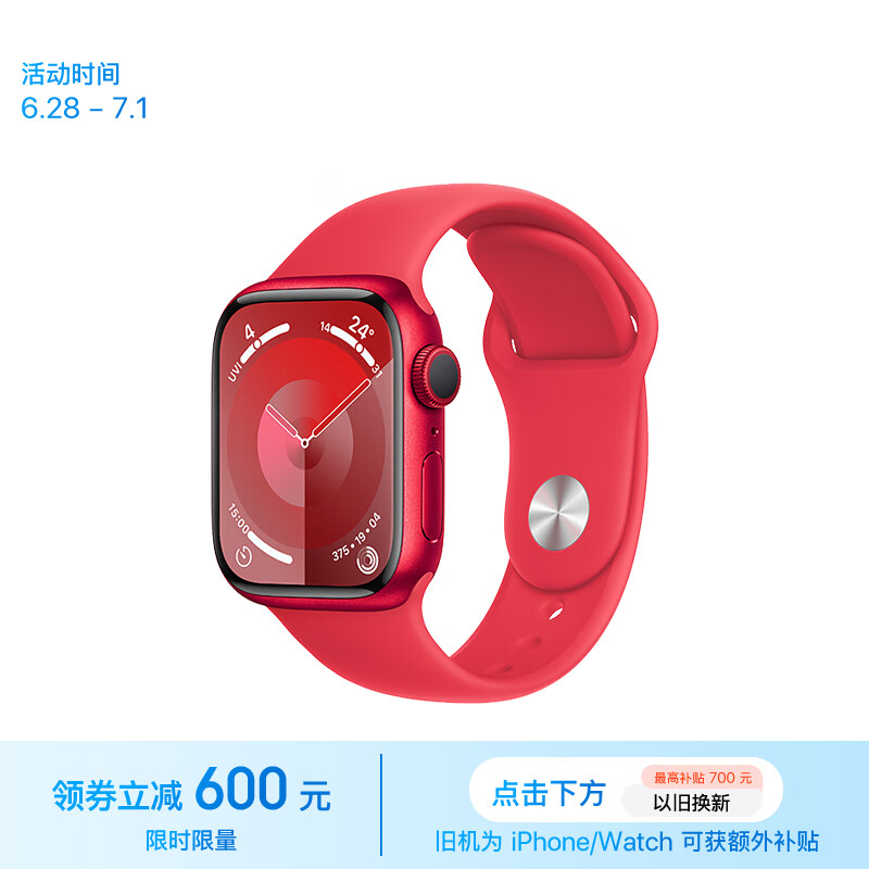 Apple/苹果 Watch Series 9 智能手表GPS款41毫米红色铝金属表壳 红色运动型表带S/M MRXG3CH/A价格:2999.00元!