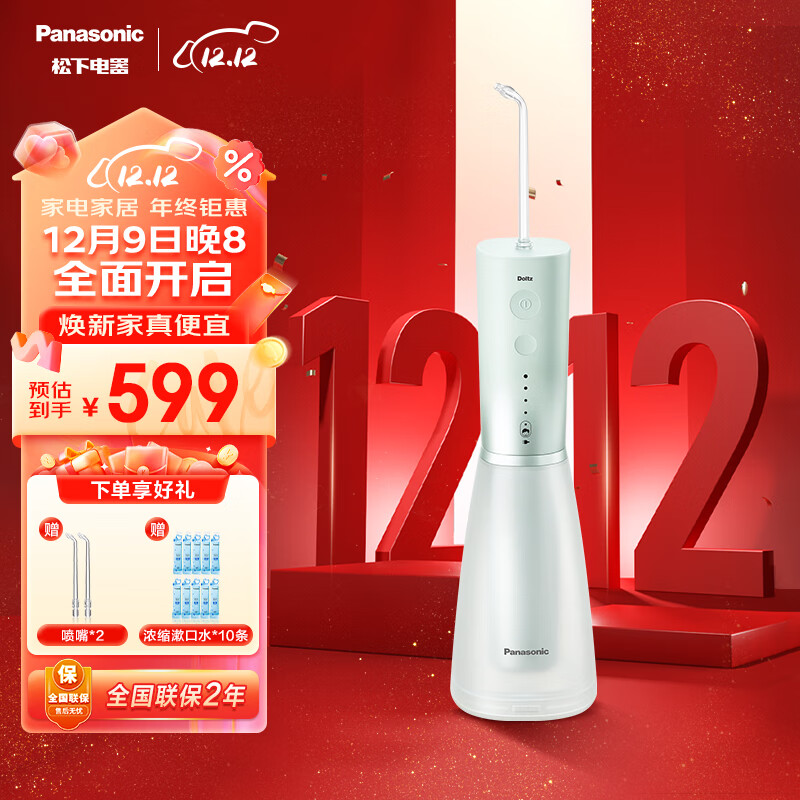 松下(Panasonic)冲牙器洗牙器 超声波洁牙器立式便携 焕彩情侣送礼款 含正畸喷嘴 自带儿童模式EW-1523-G绿色价格:699.00元!