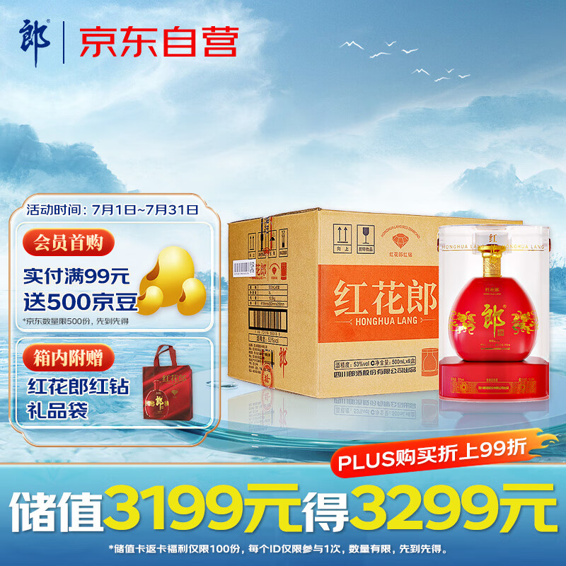 郎酒 红花郎 红钻 酱香型白酒 53度500ml*6瓶 整箱装 【婚礼宴席】价格:3151.00元!
