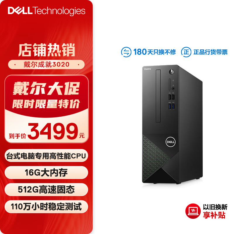 戴尔(Dell)成就3020 台式电脑主机(酷睿13代i5-13400 16G 512GSSD)单主机 高性能CPU价格:3499.00元!