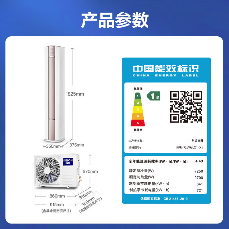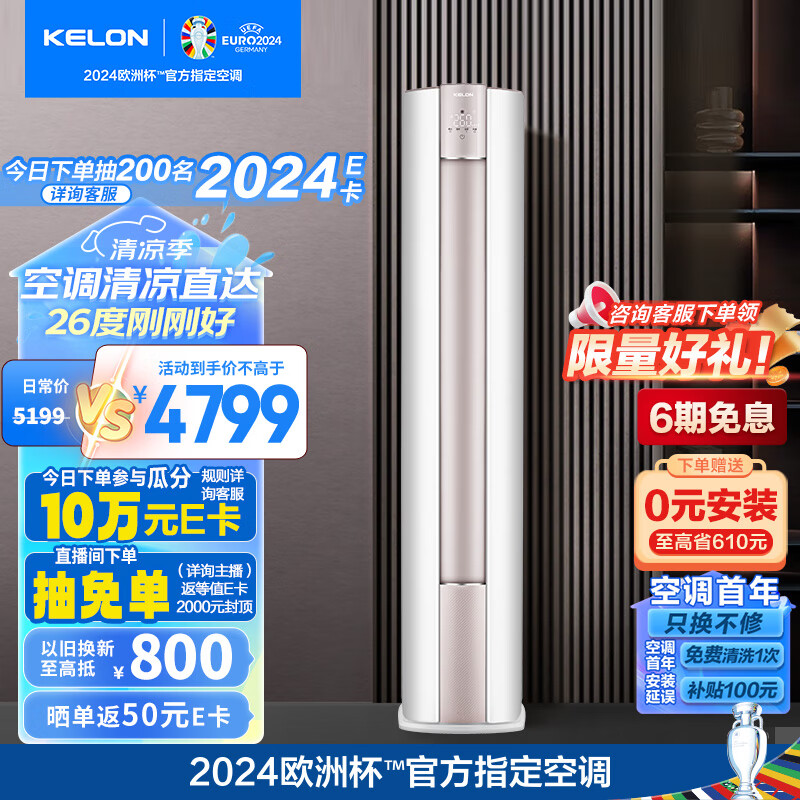 科龙(KELON)空调 3匹 新一级能效 15米送风 变频省电 冷暖 圆柱立式柜机 客厅 KFR-72LW/LX1-X1【一价全包版】价格:4799.00元!