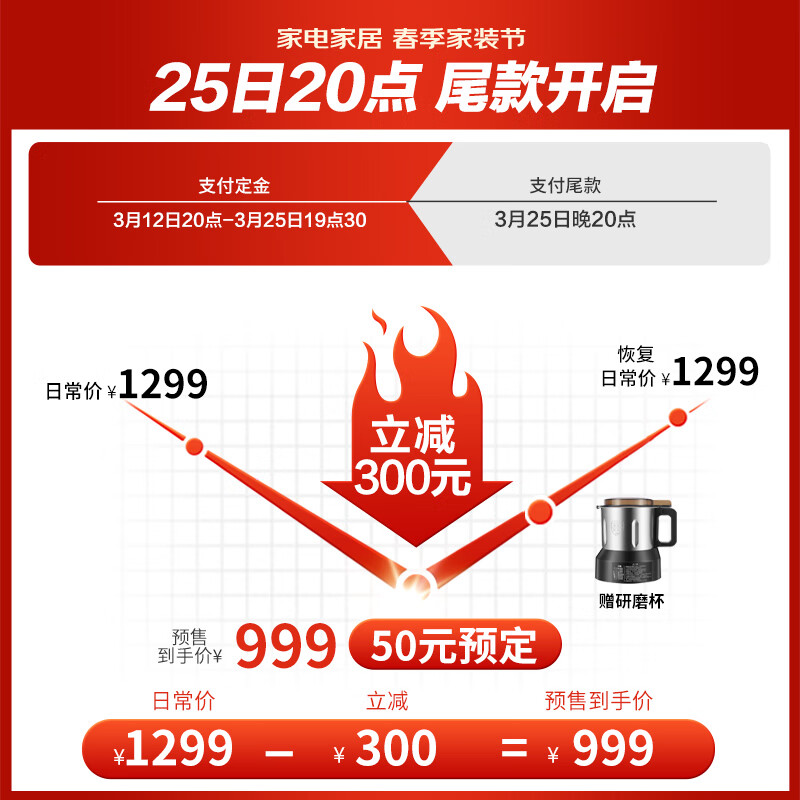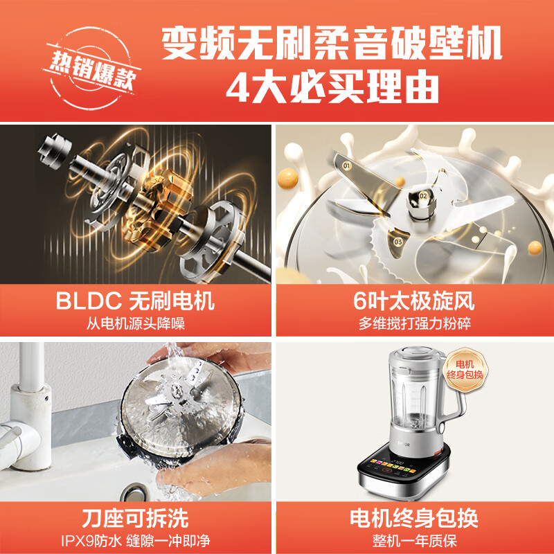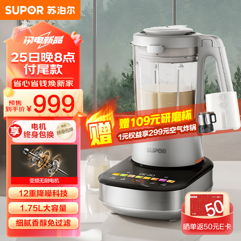 苏泊尔(SUPOR)轻音破壁机 家用榨汁机豆浆机料理机1.75L大容量多重降噪 变频轻音 触控彩屏 SP601R价格:999.00元!