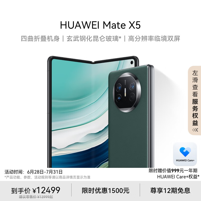 华为(HUAWEI) Mate X5 折叠屏手机 12GB+512GB 青山黛价格:12499.00元!