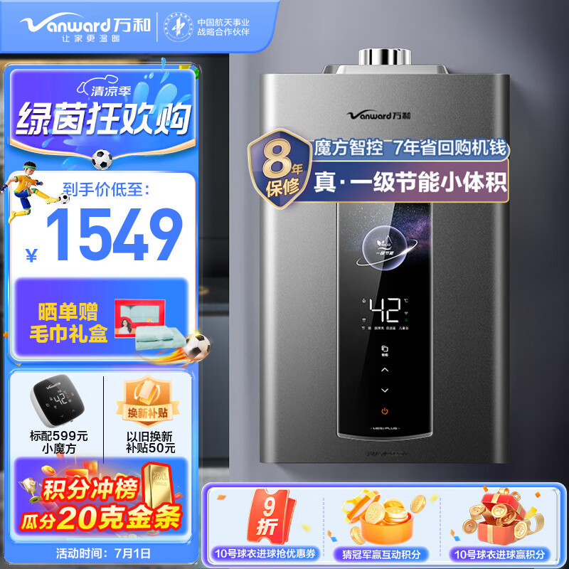 万和(Vanward)燃气热水器16升天然气小体积【真·一级节能】小魔方智控水伺服恒温JSQ30-ME5J16 PLUS 以旧换新价格:1549.00元!