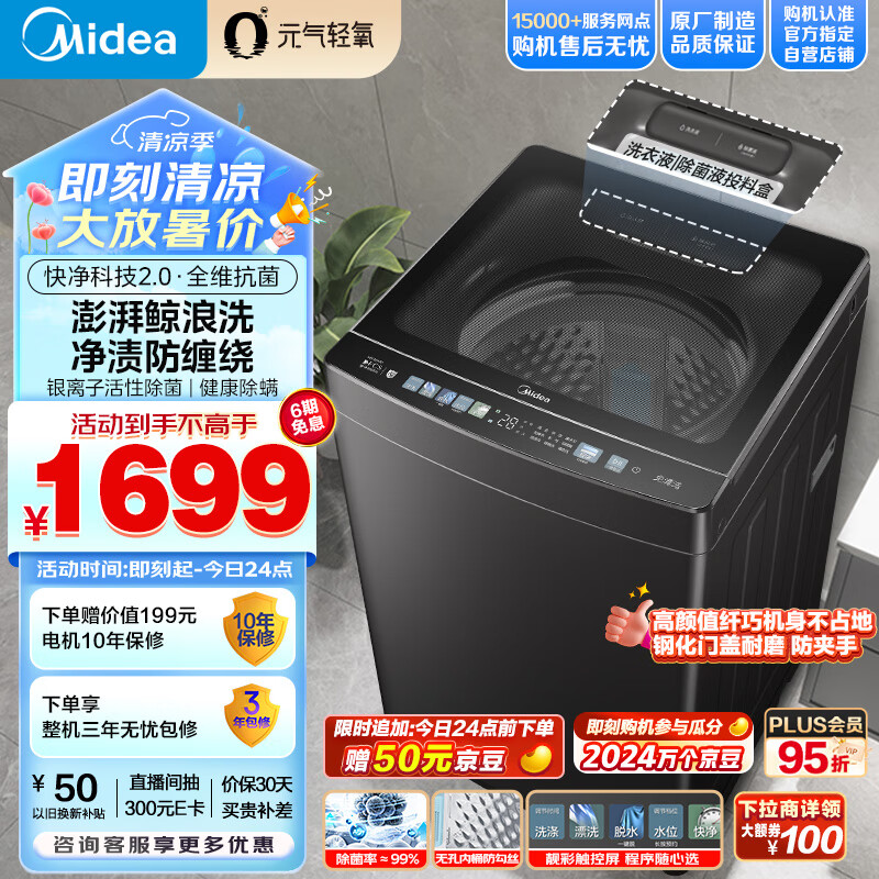 美的(Midea)波轮洗衣机全自动 元气轻氧系列 10公斤 快净科技 澎湃鲸浪洗 银离子除菌 健康除螨 MB100AIR1价格:1699.00元!