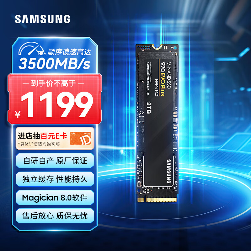三星(SAMSUNG)2TB SSD固态硬盘 M.2接口(NVMe协议) 独立缓存 AI电脑配件 970 EVO Plus价格:1199.00元!
