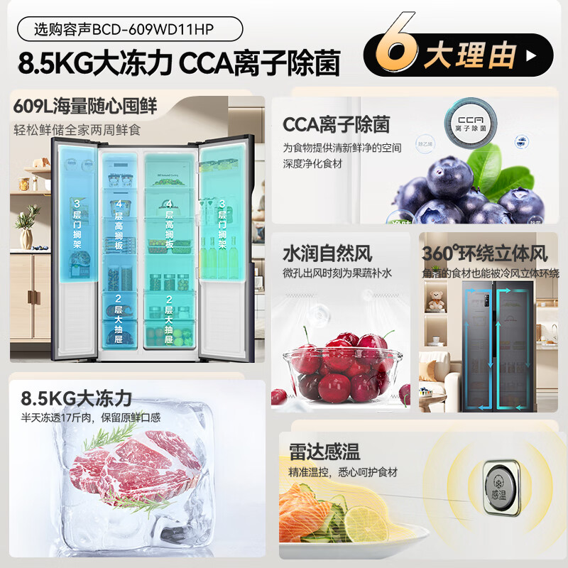 给大家分享下!实实在在的说这款容声BCD-609WD11HP,总体感觉还满意的,包装很严实,没有破损,每个细节都看得出用心和品质。